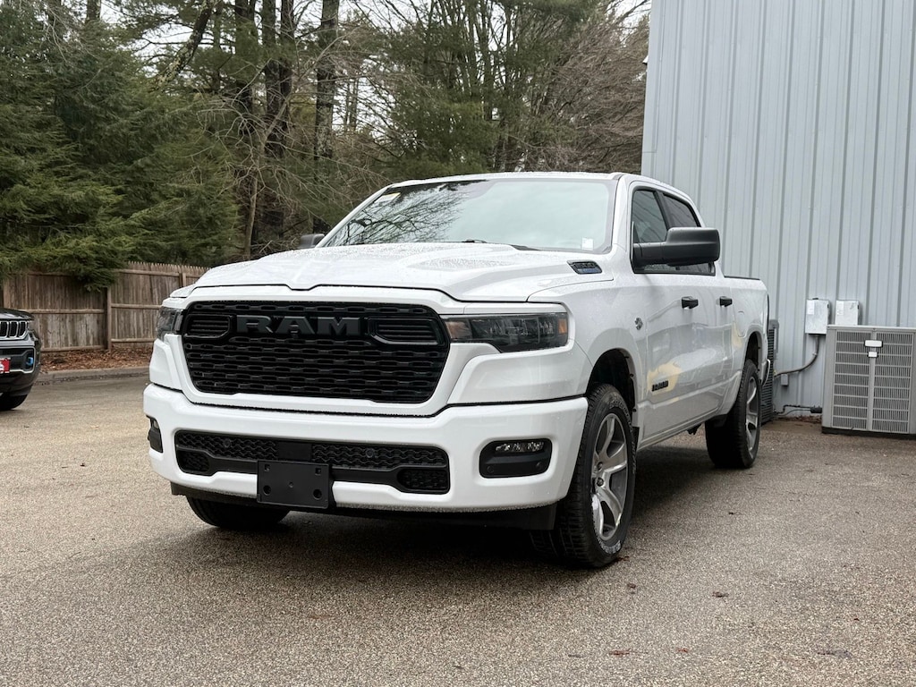 Bright White Clearcoat 2026 Ram 1500 Express 4WD 8-Speed Automatic HEMI 5.7L V8 Multi Displacement VVT eTorque 2nd Row in Floor Storage Bins, 4 Way Front Headrests, 4-Wheel Disc Brakes, 400W Inverter, 48V Belt Starter Generator, 4G LTE Wi-Fi Hot Spot, 6 Speakers, ABS brakes, Air Conditioning, AM/FM radio, Apple CarPlay, Apple CarPlay/Android Auto, Auto High-beam Headlights, Bed Utility Group, Black Exterior Mirrors, Black Interior Accents, Body Color Front Bumper, Body Color Rear Bumper with Step Pads, Brake assist, Bridgestone Brand Tires, Cloth Bench Seat, Compass, Connectivity - US/Canada, Delay-off headlights, Driver door bin, Dual front impact airbags, Dual front side impact airbags, Electronic Stability Control, Exterior 115V AC Outlet, Exterior Mirrors with Heating Element, For Details Visit DriveUconnect.com, Front and Rear Floor Mats, Front anti-roll bar, Front Center Armrest, Front Center Seat Cushion Storage, Front LED Fog Lamps, Front License Plate Bracket, Front reading lights, Front wheel independent suspension, Fully automatic headlights, Global Telematics Box Module, Google Android Auto, GPS Antenna Input, Grille Surround 1 Body Color Texture 1 Black, Heated door mirrors, Heavy Duty Vinyl 40/20/40 Split Bench Seat, Illuminated entry, Integrated Center Stack Radio, Integrated Voice Command with Bluetooth, Low tire pressure warning, Manual Adjust 4-Way Driver Seat, Manual Adjust 4-Way Front Passenger Seat, Manual Folding Exterior Mirrors, MOPAR 4 Adjustable Cargo Tie-Down Hooks, MOPAR Deployable Bed Step, MOPAR Spray in Bedliner, MyFlexCare Service Plan, Occupant sensing airbag, Outside temperature display, Overhead airbag, Overhead console, Panic alarm, ParkView Rear Back-Up Camera, Passenger door bin, Passenger vanity mirror, Pick-Up Box Lighting, Power door mirrors, Power steering, Power windows, Quick Order Package 27D Express, Radio data system, Radio: Uconnect 5 W with 8.4" Display, Rear anti-roll bar, Rear Folding Seat, Rear Power Sliding Window, Rear step bumper, Remote keyless entry, SiriusXM Radio Service, SiriusXM Satellite Radio, Speed control, Supplier Part Tracking (J-1), Tachometer, Telescoping steering wheel, Tilt steering wheel, Traction control, Tradesman Level 1 Equipment Group, Trailer Brake Control, USB Host Flip, Variably intermittent wipers, Voltmeter, Wheels: 18" x 7.5" Steel Painted, Wheels: 20" x 9.0" Aluminum Polished Painted.